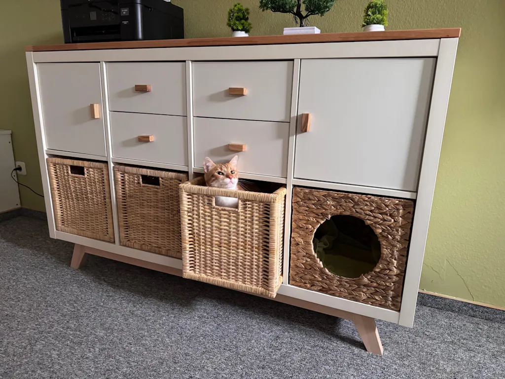 IKEA Kallax Korb für Katzen ist platzsparend und budgetschonend